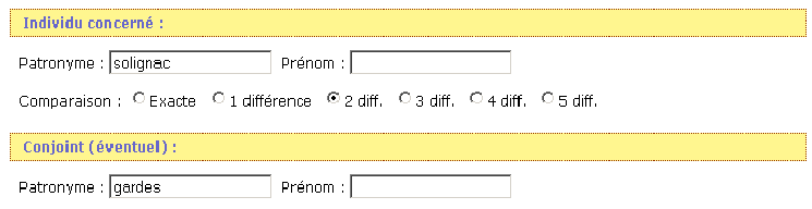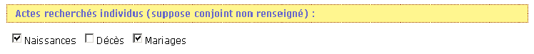 A) Recherche d'un individu (Prérequis : ne rien mettre dans le champs conjoint)